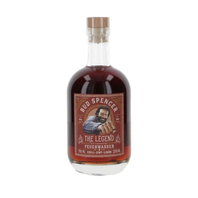 Das Bud Spencer Feuerwasser ist ein Likör aus dem Hause St. Kilian in Unterfranken. Dafür wird der St. Kilian Rohbrand mit natürlichen Zimt- und Chili-Noten verfeinert.