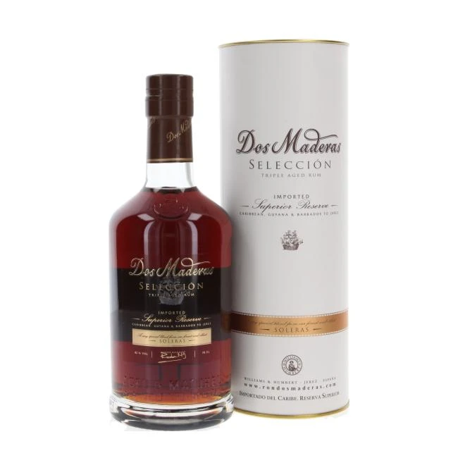 Der Dos Maderas Selección ist ein Rum Blend aus sorgfältig ausgewählten Fässern des Dos Maderas 5+5 PX und Blends von 10 Jahre alten Rums aus Barbados und Guyana. Diese wurden zuvor in ehemaligen Bourbonfässern gereift. Das Ergebnis der Vermählung im Solera-Verfahren wird mit 42% vol. in Fassstärke abgefüllt. Bodegas Williams & Humbert wurde 1877 gegründet und heute in zweiter Generation im Besitz der Familie Medina. Die Bodega ist die größte Europas und beheimatet über 50.000 amerikanische Eichenfässer zur Reifung von Sherry, Brandy und Rum.