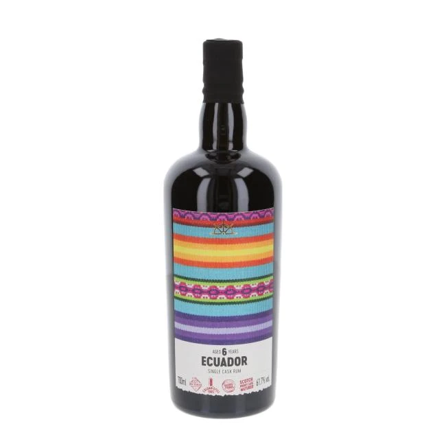 Auch dieser 6 Jahre alte Rum aus Melasse kommt aus der Provinz Cotopaxi in den östlichen Anden. Er wurde nach der Destillation auf Column Stills und seiner Reifung in Fässern, die zuvor Scotch Whisky enthielten, exklusiv für einen deutschen Importeur in Fassstärke abgefüllt. Das Design der Flaschenetiketten erinnert an die farbenfrohen Webmuster, wie sie auch oft in Ponchos und der traditionellen Kleidung der Einheimischen in Ecuador vorkommt.