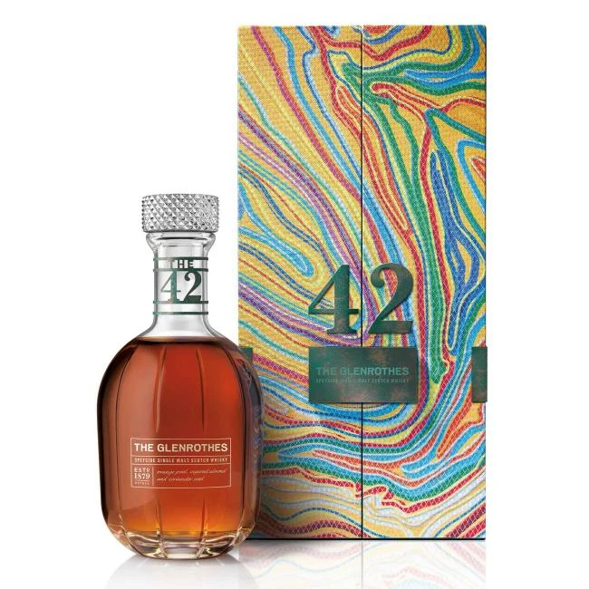 Der 42 Jahre gereifte Glenrothes wurde durch die Fasslagerung in der Landschaft der Highlandbrennerei geprägt. Durch die externen Einflüsse reifte dieser besondere Whisky zu einem lebendigen Ausdruck des Lebensgefühls von Glenrothes heran. Die bunte Umverpackung der edlen Flasche ist eine Hommage an die Farben und Konturen der Brennerei. Der Single Malt ist ein einzigartiger Single Cask Whisky in streng limitierter Auflage.