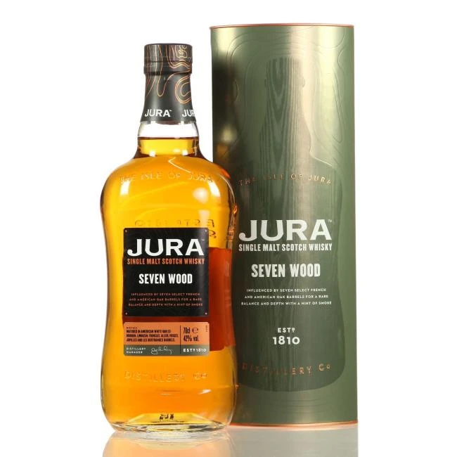 Jura Seven Wood ist eine Hommage an den Master Destillateur von der Brennerei. Nach der Reifung in Bourbonfässern folgte noch ein Finish in 6 verschiedenen französischen Eichenfässern: Allier, Limousin, Trancais, Les Bertranges, Vosges und Jupilles.