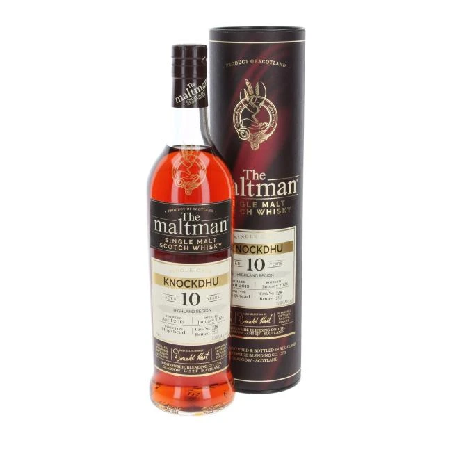 Der 10-jährige Knockdhu Single Malt gehört zur The Maltman Serie von Meadowside Blending. Gereift in einem einzelnen Sherry Hogshead kommt der Whisky weder kühlgefiltert noch gefärbt in die schlanken Flaschen mit den ikonisch-schwarzen Etiketten. Der unabhängige Abfüller Meadowside Blending ist in Glasgow beheimatet und füllt besondere Einzelfässer aus den namhaften Brennereien Schottlands ab und wurde bereits mehrfach für seine Kreationen ausgezeichnet.