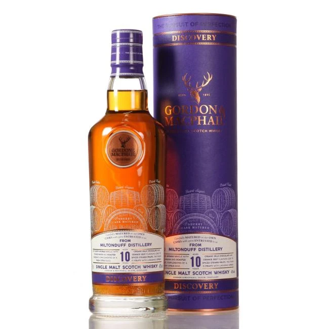Dieser Miltonduff gehört zur ‚Discovery Serie‘ von Gordon & MacPhail. 2018 folgte eine Neuaufstellung des kompletten Sortiments des unabhängigen Abfüllers, wobei die Abfüllreihe neu hinzugekommen ist. Alle ihre Abfüllungen unterscheiden sich geschmacklich und aufgrund ihrer Herstellung. So gibt es die drei Geschmacksprofile Bourbonfass, Sherryfass und Smoky (rauchig). Die verschiedenen Charaktere unterscheiden sich in ihrem farblichen Design: Grün = Bourbonfass; Lila = Sherryfass; Weiß/Grau = Smoky.