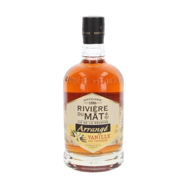 Rivière du Mât Arrangé Vanille Rhum stammt von der kleinen Insel La Rèunion. Als Basis für die Spirituose dient Melasse Rum, der nach der Destillation auf Column Stills mit Früchten und Gewürzen aus der Region verfeinert wird. Im Vordergrund dieser Spirituose auf Rumbasis stehen mazerierte Vanilleschoten. Die seit 1886 existierende Brennerei Rivière du Mât wurde nach einer Legende benannt, in der ein Schiff, das zur Erkundung der vor Madagaskar gelegenen Insel aufgebrochen war, in einem Flussbett der Insel La Rèunion auf Grund lief. Nur der Mast ragte noch aus dem Fluss und machte diesen als Rivière du Mât bekannt, den Fluss des Mastes“. Der Mast wurde Symbolbild der Brennerei und ähnelt der Säulenbrennblase, mit der Rivière du Mât ihren Rhum Traditionelle de la Réunion destilliert.