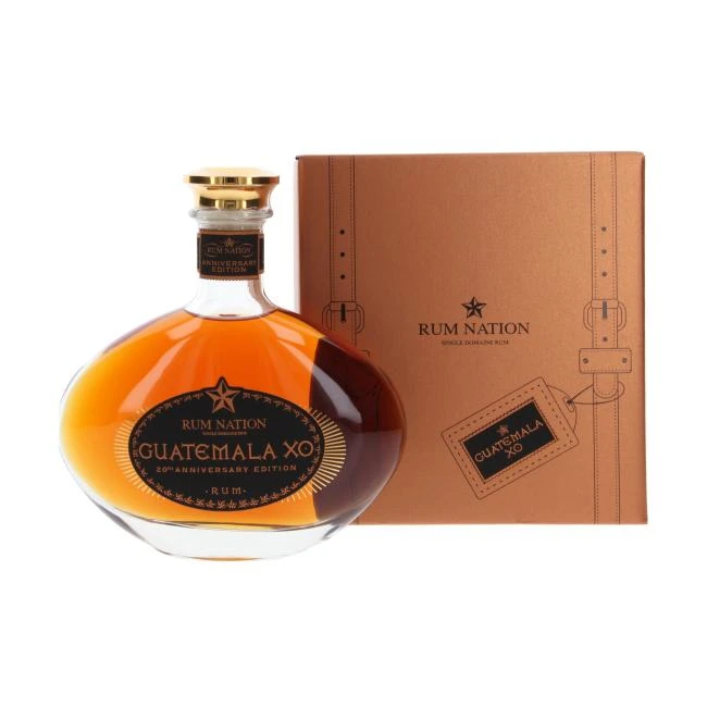 Zum 20-jährigen Jubiläum von Rum Nation wurden vom Rumhersteller einige der besten und süßesten Fässer des kostbaren Rums aus Guatemala von Hand verlesen. Der Guatemala Rum XO wird aus Zuckerrohrmelasse hergestellt und in einer Column Still destilliert. Er reift für mindestens 4 Jahren in ehemaligen Bourbonfässern aus Weißeiche im tropischen Klima der Hondo-Flussregion. Eine Nachreifung in Oloroso- und Pedro Ximenez-Fässern für 16 Monate am kühleren Standort von Rum Nation verstärkt die Weinnoten und fruchtigen Anklänge des Rums sowie seine natürliche Süße.