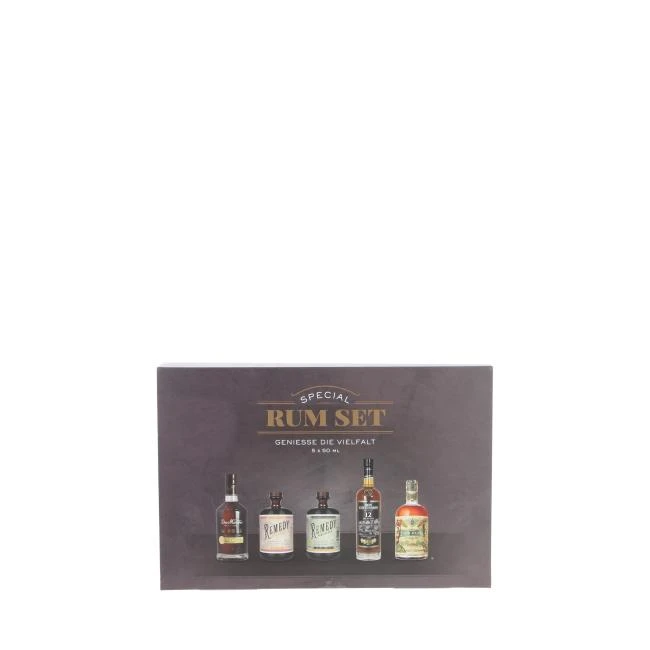 Dieses Rum Tasting Set kommt mit fünf Mniaturflaschen à 0,05 Litern. Die verschiedenen Sorten laden zum probieren, genießen und verkosten ein.