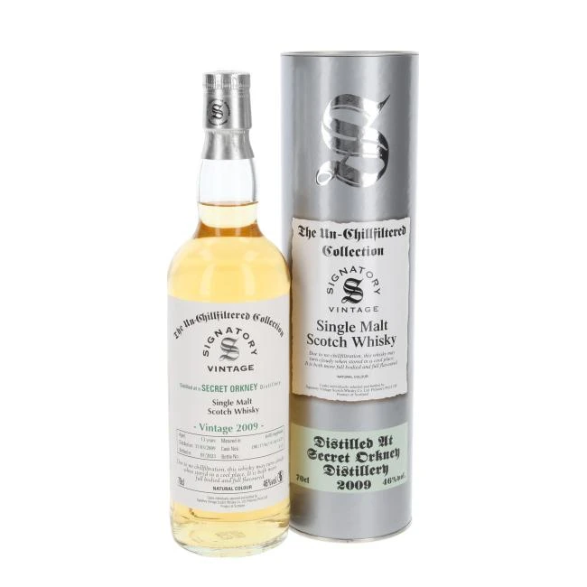 Dieser Secret Orkney Single Malt Whisky stammt aus einer ungenannten Brennerei und wurde vom unabhängigen Abfüller Signatory Vintage herausgebracht. Er gehört zur Un-Chillfiltered Reihe von Signatory, in der die Whiskys nicht kühlgefiltert wurden. Damit sie sich nicht eintrüben, wurden sie mit 46% abgefüllt. Die Single Malts fallen dadurch besonders intensiv im Geschmack aus. 13 Jahre lang reifte der Malt in fünf Refill Hogsheads.